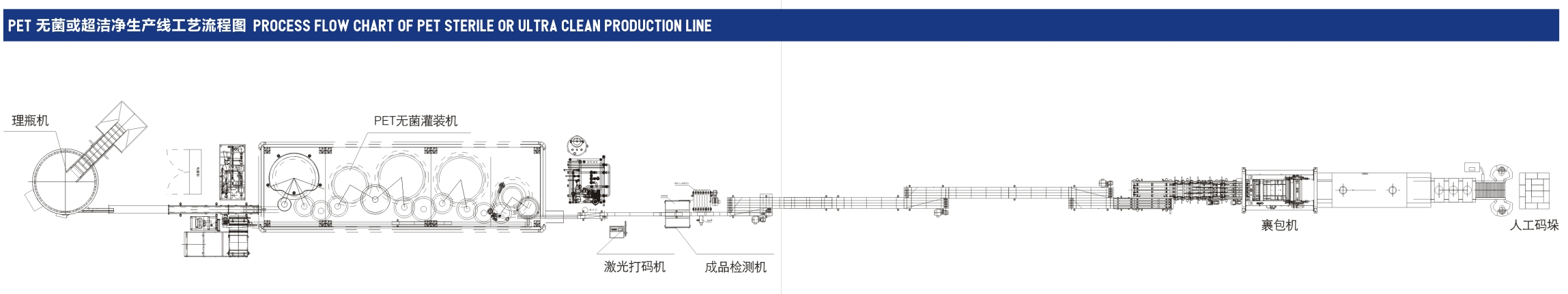 首頁 - 產(chǎn)品展示 - 標(biāo)準(zhǔn)生產(chǎn)布局圖 - PET 無菌或超潔凈生產(chǎn)線工藝流程圖
